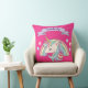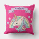 Dit schattige en kleurrijke custom worp kussen heeft een prachtige illustratie van een eenhoorn en pastelkleurige regenboog, over een hete roze achtergrond. Kleine sterren in bijpassende kleuren omringen de regenboog. Boven de eenhoorn is een banner afgedrukt met hieronder een voorbeeldnaam in een elegant paars schrift. U kunt het kussen personaliseren om uw eigen aangepaste naam of tekst op te nemen.