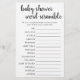 Eenvoudig Baby Word Scramble | Zwart Wit Spel Kaar