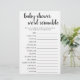 Ontwarren de baby woorden! Eenvoudig baby shower of geslacht onthullen woord scramble party game (met antwoorden hieronder) met een leuk, casual handgeschreven script. Het klassieke ontwerp bevat een moderne handgeschreven citaat typografie overlay. Voor andere kleuren of bijpassende producten, bezoek de JustFharryn Zazzle winkel, of neem contact op met de ontwerper, c/o Fharryn@yahoo.com Alle rechten voorbehouden. #bohochic #zazzlemade ANTWOORD SLEUTEL: slabbetje, speelpen, rammelaar, wieg, shampoo, Baby poort, deken, eenzijdig, luiertas, kinderwagen, Baby monitor, slaapliedje, fopspeen, fles