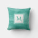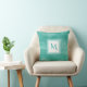 Een eenvoudig subtiel marmeren vierkant kussen in blauwgroen groen met een moderne witte vierkante badge die u kunt personaliseren door uw monogram initiaal toe te voegen aan. Dit maakt deel uit van het Arcadia Subtle Marble Monogram Collectie.