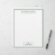 Professionele briefhoofd in wit met groene lijsten waar u jouw naam en contactinformatie in elegante letters en, bij de bodem, uw logo kunt toevoegen.