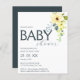 Een eenvoudige, elegante baby shower-uitnodiging met een citroengele bloemstructuur.