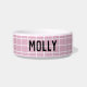 Moderne, geometrische rasterpatroon aanpasbare dierenkom in een roze girale roze. Deze kom is een super schattig accessoire voor je huisdier of een ideaal cadeau voor de huiseigenaar in je leven, Aangepast met namen in een roze kleur en er zijn accessoires beschikbaar.
