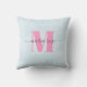 Dit ontwerp heeft een typografie, gooi kussen met een elegante, kalligrafie, monogram, met roze, blauw, met een gepersonaliseerde, eenvoudige, minimalistische, minimalistische