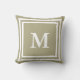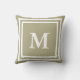 U kunt het grote witte monogram (initiaal) dat in het midden van deze salie groen (hex code: B2AC88) kussen gooien personaliseren.