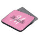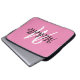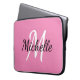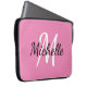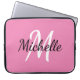 Laptop hoesje met een roze achtergrond en een wit aangepast monogram, eerste initiaal en voornaam.