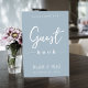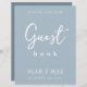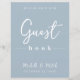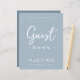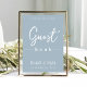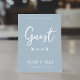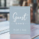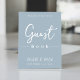 Dit ontwerp kenmerkt bruiloft eenvoudige moderne gebarentekens, citaat uit het gastenboek, minimaal dusty blauw, tabletop receptiegastenbalk, dusty blue minimalistische stijl, modern kalligrafiescript tekstlettertype, elegant trendy stijlvolle typografie lettertype, een elegant simplistisch gastbord, een moderne gastenboekstijl, een aangepaste ontvangstborden