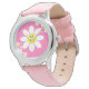 Dit schattige horloge heeft witte madeliefjes en een roze achtergrond met aanpasbaar initiaal.