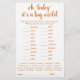 "Baby" van het baby shower of gender reveal party game (met onderstaande antwoorden) met een leuk, casual handgeschreven script. ANTWOORDSLEUTEL: Detka - Russisch, Moró - Grieks, Baba - Hongaars, Bebis - Zweeds, Elskan - IJslands, Otroka - Sloveens, Leens - Iers, Moto - Swahili, Infans - Latijn, Bambino - Italiaans, Bebê - Portugees, Pēpè - Hawaiian, Embé - Vietnamees, Beba - Servisch, Vauva - Fins, Akachan - Japans, Bachcha - Hindi, Bebé - Spaans, Babi- Welsh, Bébé - Frans Bezoek de JustFharryn Zazzle of neem contact op met de ontwerper, c/o Fharryn@yahoo.com Alle rechten voorbehouden. #bohochic #zazzlemade