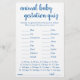 Het baby shower of het geslacht van de zwangerschapsduur van het dier tonen partijspel (met antwoorden hieronder) met een leuk, casual, met de hand geschreven en bloeiend schrift. ANTWOORD KEY: Pig-122, Kangaroo-37, Paarden-336, Cat-63, Rabbit-33, Elephant-645, Duck-28, Sheep-148, Koe-284, Whale-360, Lion-10 8, Dog-63, Mouse-20, Giraffe-419, Beer-220, chimpansee-243, Goat-150 Voor andere kleuren of overeenstemmende producten, gelieve de opslag JustFharryn Zazzle te bezoeken, of de ontwerper te contacteren, c/o Fharryn@yahoo.com Alle voorgebe*houde rechten. #zazzlemade