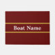 Dit donkere rode doormat heeft witte vertoningstekst in het midden. U kunt de tekst bewerken om de naam van uw boot te shows. De faux gouden strepen zijn niet van folie gemaakt.