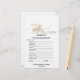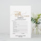 Deze simpele goudkalligrafie "wat zit er in je handtas" is perfect voor een chic vrijgezellenfeest. Aan de voorkant van de gamekaart staat "hoe goed ken je de bruid" en aan de achterkant van de kaart staat "wat er in je tas zit". Het klassieke romantische ontwerp is voorzien van faux gouden folie-typografie en een prachtig gouden hart. Pas de voorzijde van de kaart aan met de bruidsnaam en de datum van het vrijgezellenfeest. Opmerking: dit ontwerp is niet voorzien van echte gouden folie. Het is een afbeelding van hoge kwaliteit die gemaakt is om op gouden folie te lijken.