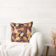 Een eenvoudige afbeelding van bladeren in cacaobruin, oranje en bleek geel tegen een zwarte achtergrond.