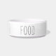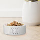 Een moderne dierenwelpenkom voor honden of katten met een moderne vorm van boerenkool is voorzien van "voedsel" in handgeschreven stijl, met een bedekte kleur.