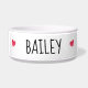 Een eenvoudige maar schattige keramische hondenkom met waterverf harten aan elke kant van je honden naam. Geef uw huisdieren een persoonlijk tintje, geweldig voor een puppy, hond of kat. Eenvoudige persoonlijke hondenbril voor hondenvoer