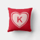 Eenvoudig rood roze hart monogram Valentijn`s dag kussen met een roze en rood hart op een rode achtergrond. Voeg je monogram toe of wis het. Schattigee en schattige Valentijn's dag cadeau.