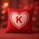 Eenvoudige Rode Roze Hart Monogram Valentijn's Day Kussen