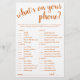 Eenvoudige "What's on Your Phone" douche / partij spel punten kaart met een leuk, casual handgeschreven script. Het klassieke ontwerp bevat een moderne handgeschreven citaat typografie overlay. Voor andere kleuren of bijpassende producten, bezoek de JustFharryn Zazzle winkel, of neem contact op met de ontwerper, c/o Fharryn@yahoo.com Alle rechten voorbehouden. #bohochic #zazzlemade