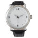 Een heel eenvoudig horloge met gewone gotische cijfers in zwart en een grote witte wijzerplaat. Klassiek ontwerp, tijdloos, gemakkelijk af te lezen waterdicht horloge.