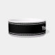 Deze zwart-witte dierenkom heeft witte display tekst in het midden. U kunt de tekst in een naam of bericht bewerken.