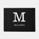 Zwarte en witte deurmat, gepersonaliseerd met uw familienaam en monogram initiaal letter.