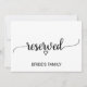 Dit simpele 'gereserveerde' zwarte kalligrafie bruiloft is perfect voor een rustige of moderne themagebruiloft. Het ontwerp is dubbelzijdig (prints aan beide zijden) en bevat een elegant penseelscript lettertype en een prachtig vrouwelijk hart. Gebruik deze kaarten om stoelen of tafels te reserveren bij uw trouwceremonie of ontvangst.