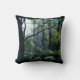 Schitterende witte stralen van de ochtendzon die van achter donkere takken naar een rijk groen zomerbos stromen, met enorme met ionen bedekte bomen en vruchtbare onderpenselen.