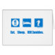 Grappig parodie van straatborden of veiligheidsborden die onze blauwe Eat, slaap, doodzombies baren, dragen zelfs een duizelingwekkende zombie met zijn hoofd half weggeblazen. Wees klaar voor de zombie-apocolyps met dit coole, wandelende, dode horror design!