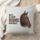 Een prachtig gekleurd potlood kunstwerk van een kastanjepaard graast de voorkant van deze gooiende kussen. Perfect geschenk voor de paardenliefhebber, eigenaar, of rijder in je leven. Eat Sleep Ride Herhaal citaat.