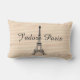 Zwarte Eiffeltoren Parijs op roze licht crèmekleurige fijne strepen patroon. Buitenkussen. Tekst: 'J'adore Paris'. Gemaakt met een glimlach door iolantesdesigns :-)!