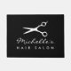 Eigen haren voor de deur met schaar, silhouette omtrek logo. Elegant zwart-wit tapijt voor haarstylist, haarkapper, winkel, kapsalon, schoonheidssalon, spa business, schoonheidsspecialist enz. Voeg je eigen bedrijfsnaam of citaat toe. De moderne sjabloon van de manuscripttypografie van de klasse.