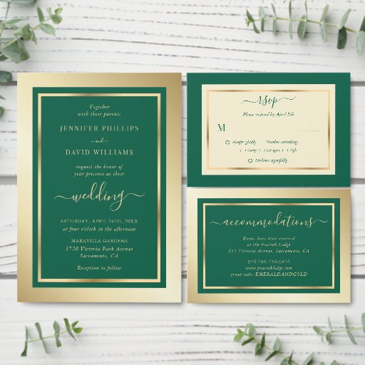 Eigen maragingnummer voor groene en gouden bruilof kaart