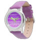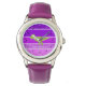 Meisjes Eigen naam - saurus t-rex dinosaurus horloge. Met een paarse roze achtergrond.