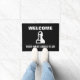 Paaien schaakstuk logo aangepaste doormat voor club. Zwart-wit ontwerp voor schaakliefhebber, speler, ventilator, leraar, student, kind enz. Gebruik de ALT-code om het pictogram te veranderen in een pion, toren, bisschop, nacht, koningin of koning. ♕ ♔ ♚ op het ♘ ♗
