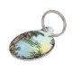 Een kunst van het publieke domein van een eiland met palmbomen, bloemen, oceaan en zonsopgang of zonsondergang van een kinderbijbel verhaal.