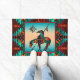 Dit is een uniek "één van een soort" einde van de traildeur! Het is voorzien van een Native American End of the Trail Indian and Horse op een Turquoise en Oranje Sunset Background... omringd door een grens in Turquoise, Oranje & Black! Origineel kunstontwerp door artiest Kerry Miller.