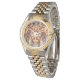 Het horloge Ekstasis - Symmetrie Opulente Edition door Reynaud de Madrid voegt de uitbundigheid van de barokstijl samen met een gedurfde kitsch-toets. De omgeving is rijk ingericht met complexe symmetrische patronen, gouden voluta's en versieringen die de barokke paleis doen denken. Verbluffende details en levendige kleuren maken het uiterlijk van kitsch scherp, waardoor een levendig contrast ontstaat. Het horloge Ekstasis - Opulente Edition-symmetrie is een horloge dat niet onopgemerkt blijft, bestemd voor degenen die hun smaak voor extravagantie durven te tonen.