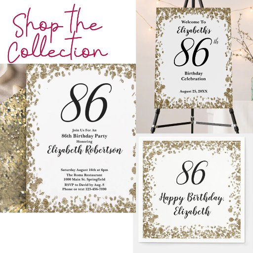 86th Birthday Gold Glitter Glam CelebrationOntworpen door Kara Buntin