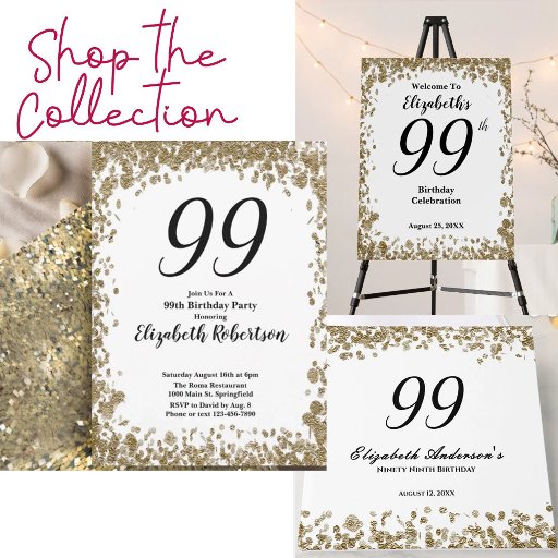 99th Birthday Gold Glitter GlamOntworpen door Kara Buntin