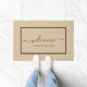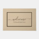 Elegant welkome doormat met een bruin script op een beige achtergrond. Personaliseer uw familienaam of tekst.