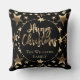 Elegant Black en Gold Script Happy Kerstmis Kussen