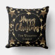 Faux Gold Script Stars Pattern op Black Background, Happy Kerstdecor Sierkussen, voeg naam of tekst toe