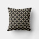 De eigenschap op deze kussen is een zilveren en gouden faux glitter quatrefoil patroon boven een zwarte achtergrond. Beide zijden van de kussen hebben hetzelfde afbeelding. *Opmerking: het afbeelding is afgedrukt en bevat geen werkelijke glitter.*