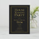 Een elegante gouden lijst zwarte uitnodiging van de partij voor het opwarmen van het huishouden.