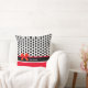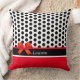 Elegante zwarte stippen, rood lint op wit Sierkussen.