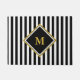 U kunt het grote faux (niet folie) monogram personaliseren dat in het centrum binnen een diamantgrens is. De achtergrond heeft verticale zwarte en witte strepen.