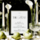 This elegant black and white wedding menu pairs classic serif typography with graceful calligraphy details for a timeless yet modern look.