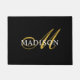 Elegant Black White Monogram Gold Script Deurmat
