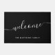 Chic Elegant Black White Script Family Name Welkom Doormat