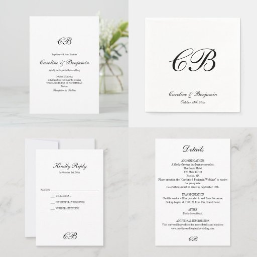 Classic Timeless Monogram Black and White WeddingOntworpen door Opal Ellery